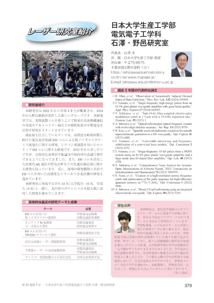 レーザー学会誌「レーザー研究」で研究室紹介されました. 2026 2/27 お知らせ 報道 2024年7月31日2026年2月27日 お知らせ 報道 よかったらシェアしてね! URLをコピーしました! URLをコピーしました!